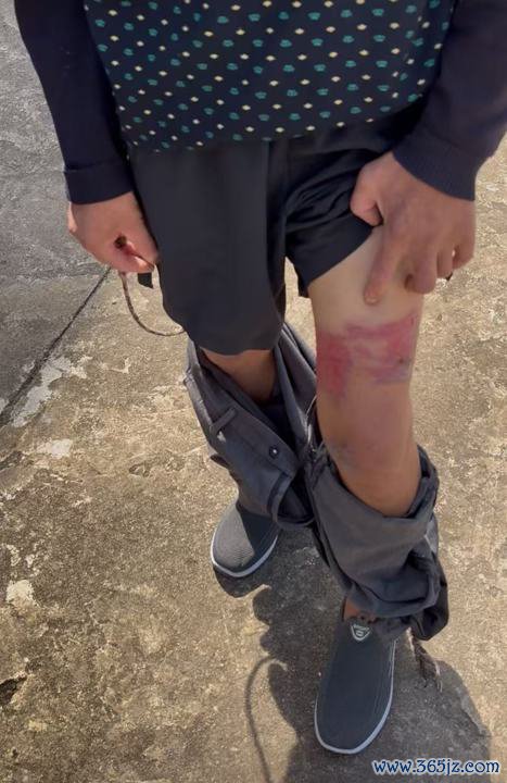陈平在展示我方作念工时腿上受的伤。 杨书源 摄